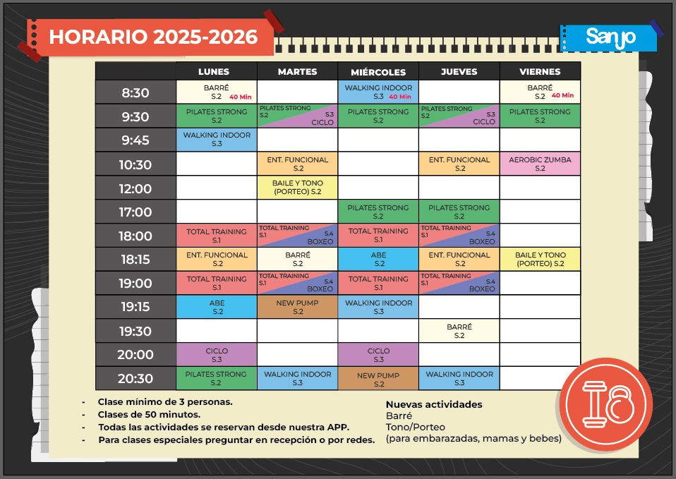 Este es el calendario de nuestras clases cualquier duda puedes preguntar en recepción